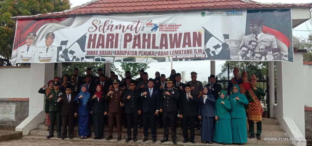 PALI,Sumselgo – Peringatan Hari Pahlawan tahun 2025 di Kabupaten Penukal Abab Lematang Ilir (PALI) digelar khidmat di halaman Kantor Bupati PALI Km 10, Senin (10/11/2025). Upacara yang diselenggarakan Dinas Sosial tersebut dipimpin langsung oleh Wakil Bupati PALI, Iwan Tuaji SH.