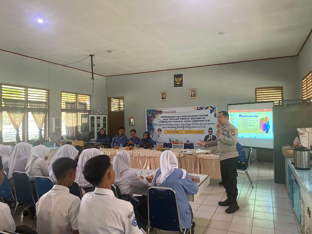 Polres Penukal Abab Lematang Ilir (PALI) melalui Satuan Pembinaan Masyarakat (Sat Binmas) menghadiri undangan Pemerintah Kabupaten PALI dalam kegiatan Penerangan dan Penyuluhan Hukum bagi Pelajar Tingkat SMA/SMK/MAN se-Kecamatan Tanah Abang, yang dilaksanakan di SMA Negeri 1 Tanah Abang pada pukul 09.00 WIB hingga selesai.