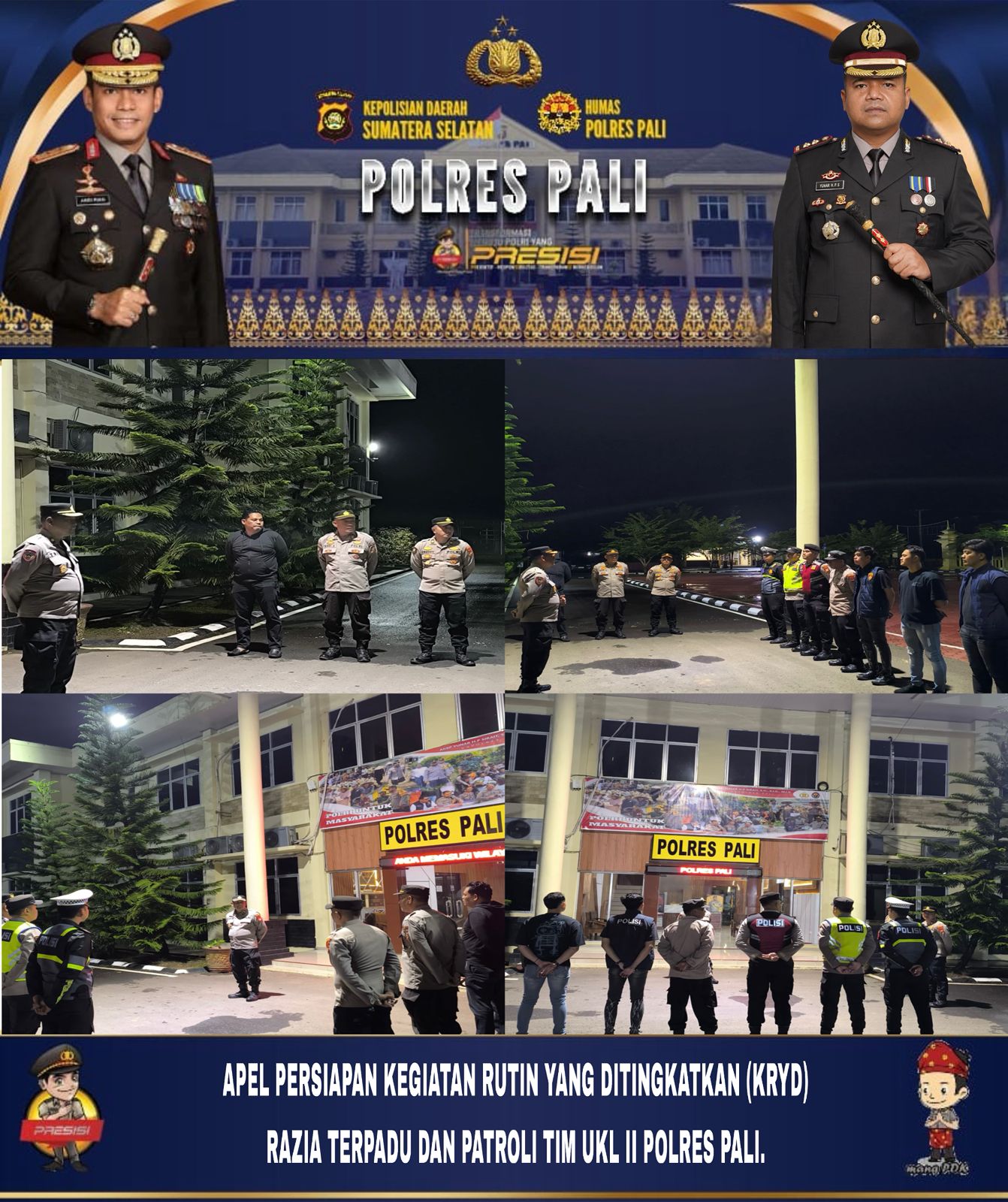 PALI,Sumselgo – Dalam rangka menjaga stabilitas keamanan dan ketertiban masyarakat (Sitkamtibmas) serta keselamatan, ketertiban dan kelancaran lalu lintas (Kamseltibcarlantas), Polres Penukal Abab Lematang Ilir (PALI) melaksanakan Kegiatan Rutin Yang Ditingkatkan (KRYD) berupa razia terpadu dan patroli oleh Tim UKL II Polres PALI, Jumat malam (9/1/2026).