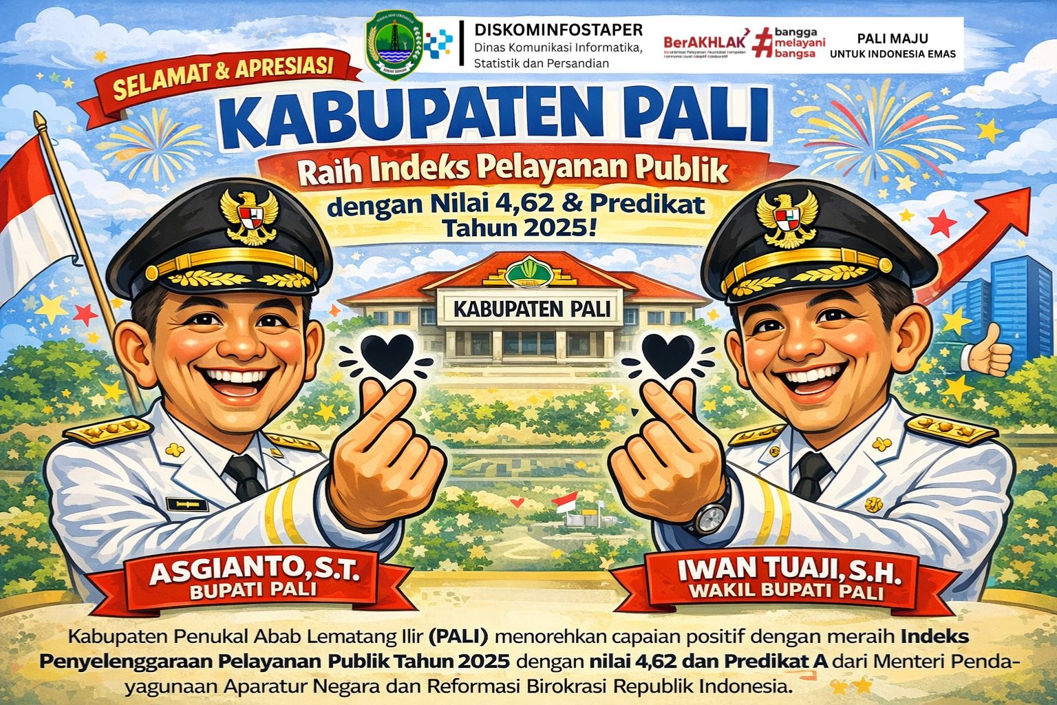 Dengan diraihnya predikat A pada Indeks Penyelenggaraan Pelayanan Publik Tahun 2025 ini, Pemerintah Kabupaten PALI berharap kepercayaan masyarakat terhadap pelayanan pemerintah daerah semakin meningkat. Ke depan, berbagai inovasi dan terobosan pelayanan akan terus dikembangkan guna mewujudkan pelayanan publik yang inklusif, berkeadilan, dan berkelanjutan demi kesejahteraan masyarakat Kabupaten PALI.(Shy)