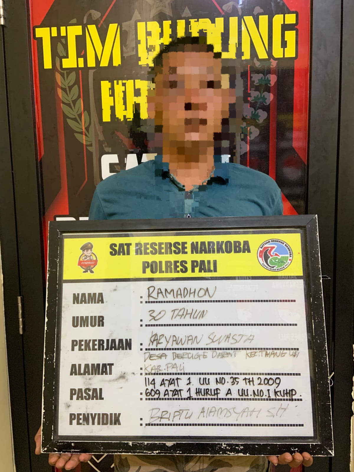 Tersangka yang diamankan diketahui bernama Rmd bin L (30), seorang karyawan swasta yang berdomisili di Desa Beruge Darat, Kecamatan Talang Ubi, Kabupaten PALI. Penangkapan dilakukan di Dusun 1 Desa Benuang setelah polisi menerima informasi dari masyarakat terkait aktivitas transaksi narkoba di lokasi tersebut.