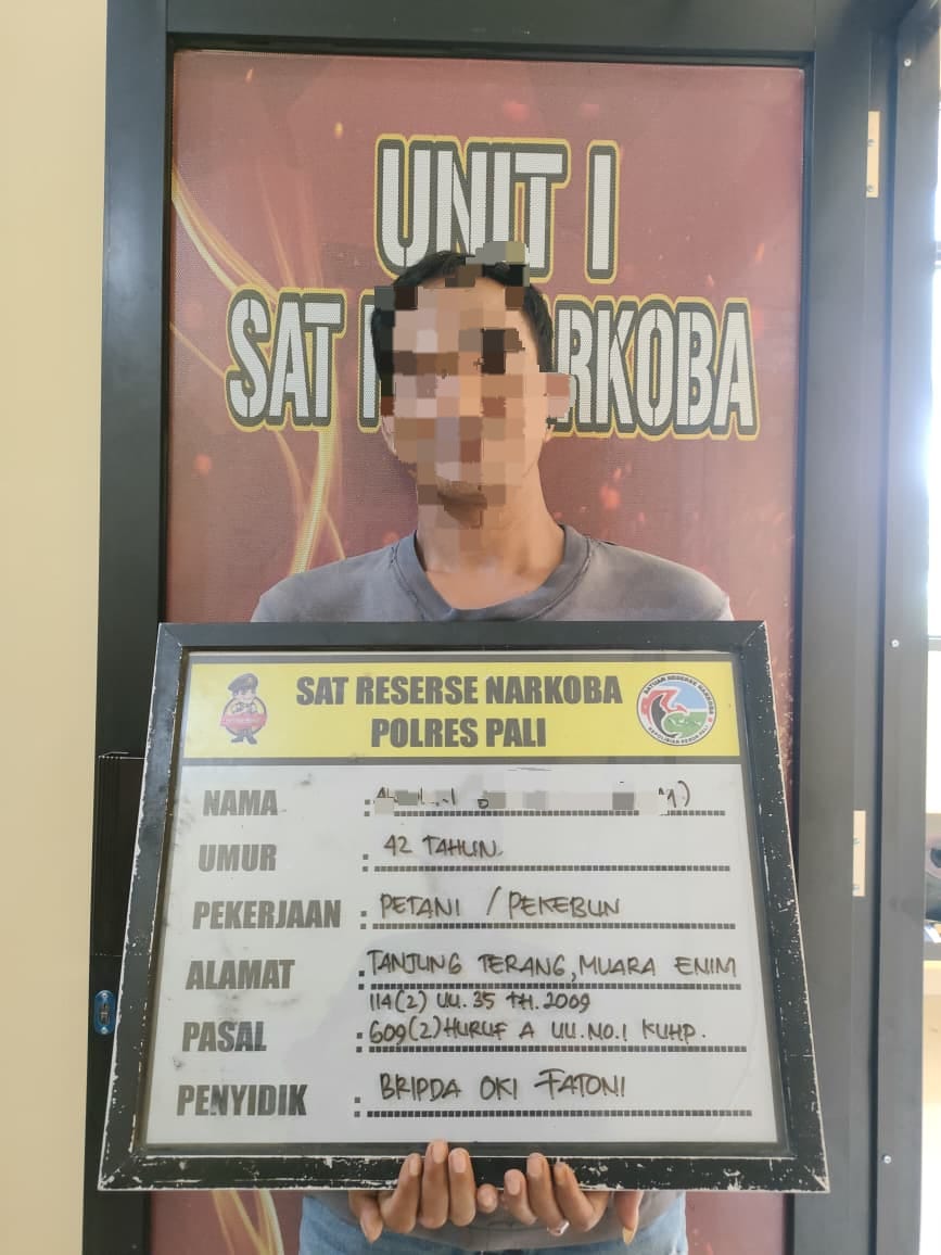 Tersangka diketahui berinisial A(42), seorang petani yang merupakan warga Dusun III Desa Tanjung Terang, Kecamatan Gunung Megang, Kabupaten Muara Enim. Ia ditangkap sekitar pukul 20.30 WIB di Jalan Sekayu–Belimbing setelah petugas melakukan penyelidikan dan penindakan berdasarkan laporan polisi nomor LP-A/22/IV/2026/SPKT.SATRESNARKOBA/POLRES PALI/POLDA SUMSEL tanggal 24 April 2026.